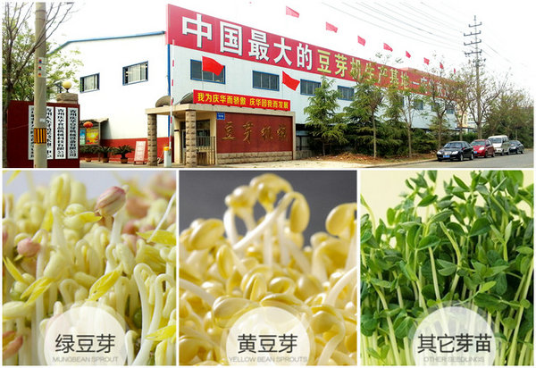 3、豆芽生產(chǎn)流程: 選擇芽豆 →→ 對豆種清洗并做無菌處理 →→ 浸種(適宜水溫) →→ 裝機(每箱約5斤干豆) →→ 啟動豆芽機,設定合理參數(shù) →→ 對育芽室做無菌處理 →→ 1天后觀察豆芽生長情況 →→ 2天后觀察豆芽生長情況 →→ 3天后觀察豆芽情況 →→ 4天后收獲豆芽 →→ 豆芽清洗后包裝,上市。